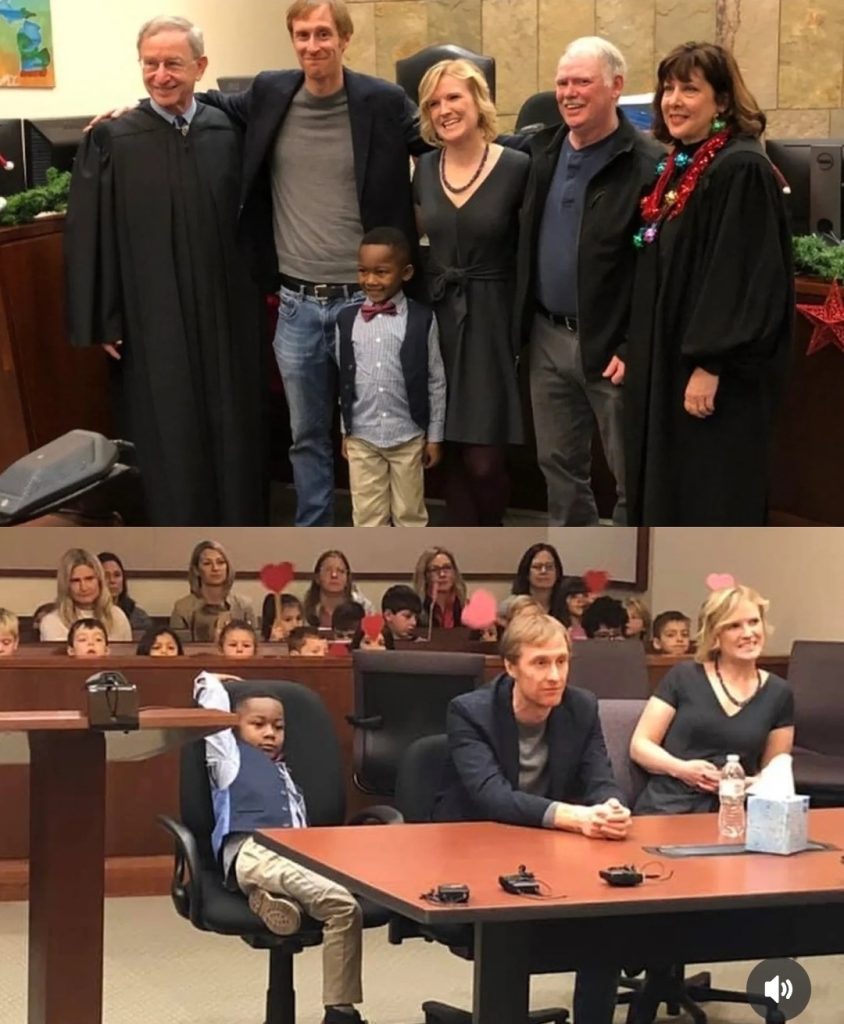 Njihova učiteljica obratila se sudu dirljivim riječima: „Obitelj ne mora značiti zajednički DNK — obitelj je podrška i ljubav.“ Kada su Michael i njegovi roditelji zajedno udarili drvenim čekićem, završavajući službeni dio postupka, u sudnici je odjeknuo gromoglasan pljesak i veselje.