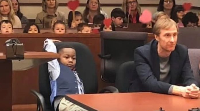 U sudnici okruga Kent Michael je sjedio ponosno uz svoje nove roditelje dok je sutkinja Patricia Gardner finalizirala postupak posvojenja.