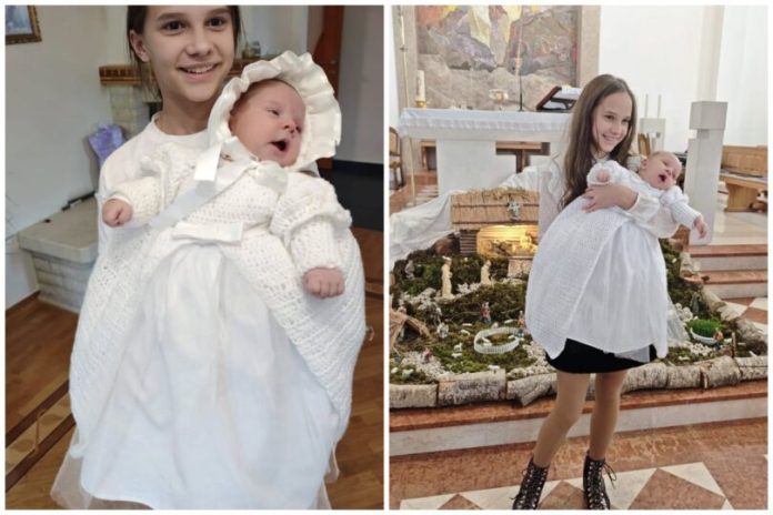 Naime, mlada Gabrijela sama je isplela haljinu za krštenje svoje mlađe sestre Antee. Svaki bod, svaki detalj i svaka nit utkane su s posebnom pažnjom i ljubavlju, svjedočeći ne samo o njezinoj vještini, nego i o dubokoj obiteljskoj povezanosti.