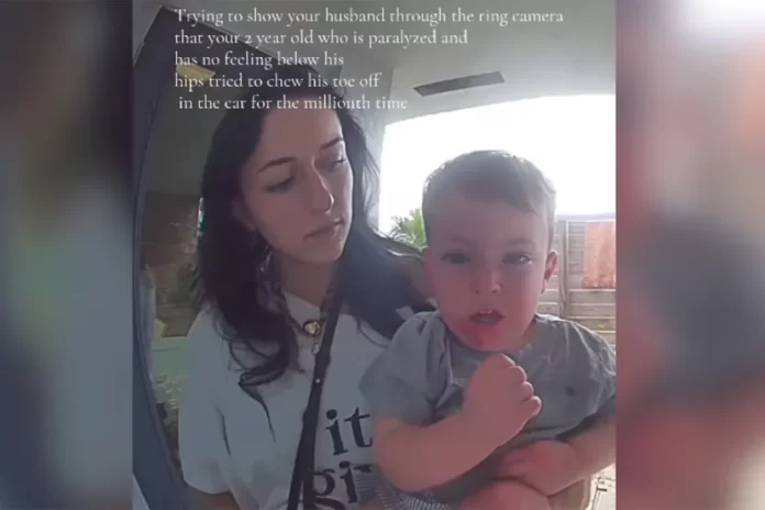 Snimak je poslala mužu putem Ring kamere, a video je ubrzo završio na TikToku i postao viralan, s više od dva milijuna pregleda. “Pokušavam mu pokazati da je naš dvogodišnjak, koji je paraliziran i ne osjeća ništa ispod kukova, ponovno pokušao odgristi sebi prst,” rekla je Hannah.