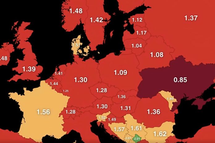 Karta nataliteta koja kruži internetom snažan je podsjetnik na demografsku zimu koja je okovala naš kontinent. Podaci govore da niti jedna zemlja ne doseže stopu od 2,1 djeteta po ženi, što je granica nužna za prirodnu obnovu stanovništva.