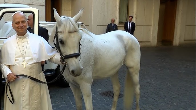 Papa Lav XIV. primio je danas neobičan i simboličan poklon na marginama redovne audijencije – čistokrvnog arapskog bijelog konja imena Proton.