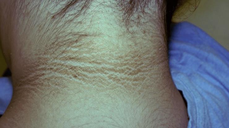 - tamna koža oko vrata, ispod pazuha i na području prepona