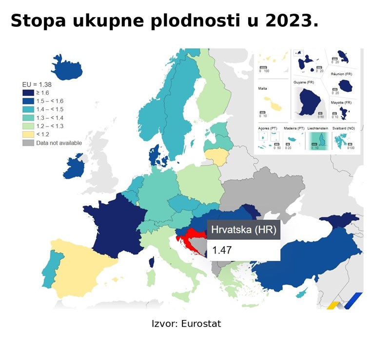 Ovi trendovi izravno utječu na stopu plodnosti koja je u Švedskoj pala na povijesni minimum od 1.43, što je najniža vrijednost zabilježena još od 1749. godine. Situacija u Hrvatskoj tek je neznatno bolja sa stopom od 1.47, dok je prosjek Europske unije pao na zabrinjavajućih 1.38.